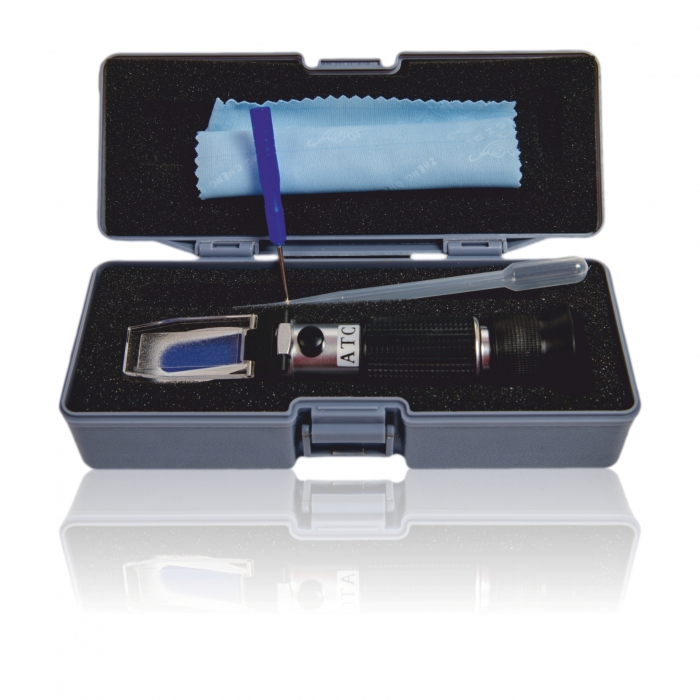 This refractometer is designed to accurately measure the freezing point of the antifreeze. The device measures the refractive index of light passing through these liquids. With the percentage indication you can find out at which temperature the fluids for propylene glycol and ethylene glycol will freeze. The device can also be used to determine the freezing point for solutions such as windscreen fluid or battery electrolyte.