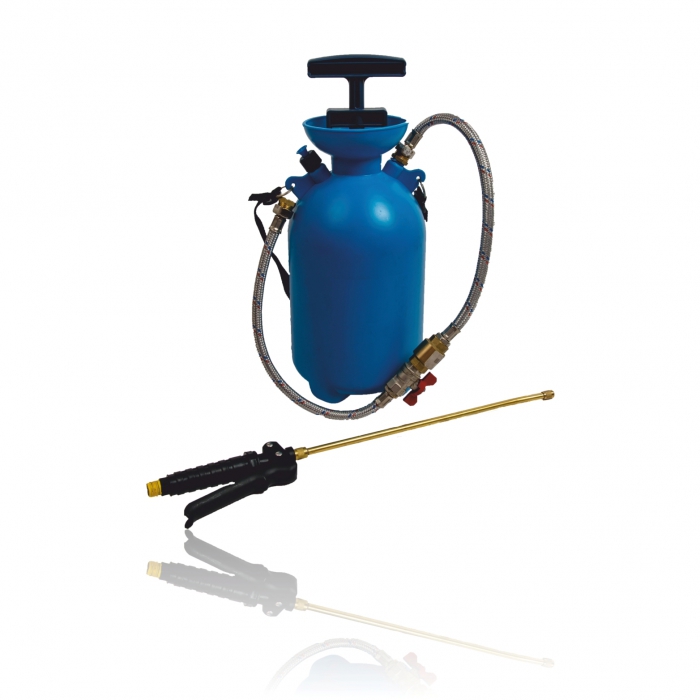 Pompa portabila cu actionare manuala pentru introducerea substantelor chimice in instalatiile termice. Asigura incarcarea sistemului la presiuni de pana la 2,5 bar. Este realizata din PVC special rezistent la compusii chimici ai antigelurilor, pasivizatorilor si inhibitorilor de coroziune si zgomot. Poate fi cuplata rapid la sistemul care necesita incarcare prin intermediul unui racord 1/2". Echipamentul integreaza un furtun armat cu lungimea de 80cm, robinet de incarcare si supapa de sens. Capacitatea rezervorului este de 10 litri, iar forma compacta a echipamentului il face foarte usor de manevrat.